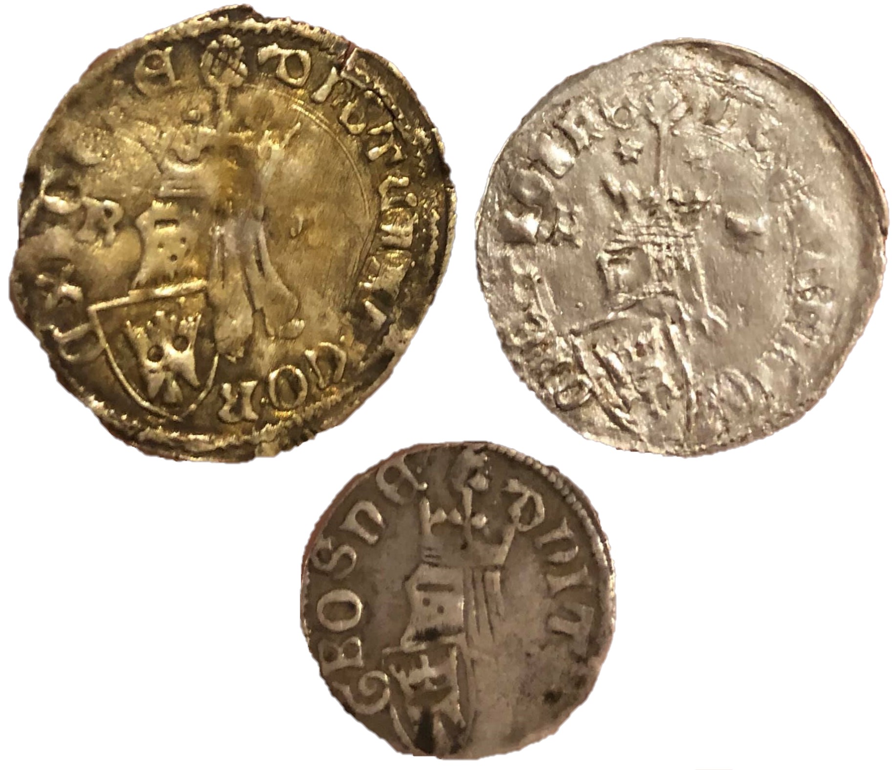 Crown, helmet, head and coin size comparison of the above 3 examples: