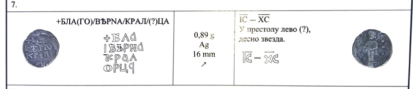 Obverse: In 5 lines Serbian Cyrillic legend: +БΛAΓO IBЋPNA KPAΛH ObЦА (BLAGOVERNA KRALJICA ("PIOUS QUEEN"))