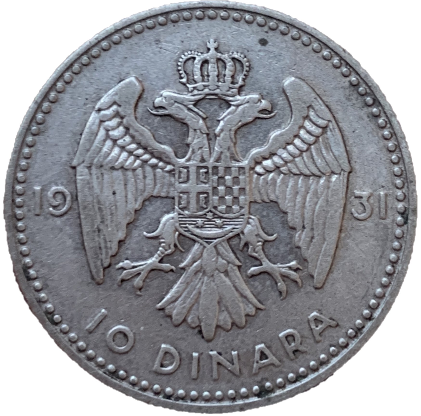 Value: 10 Dinara (10 YUS), Currency: Serbian dinar (1918-1941), Composition: Silver (.500), Weight: 7g, Diameter: 24mm, Mintage: 19,000,000. London mint.