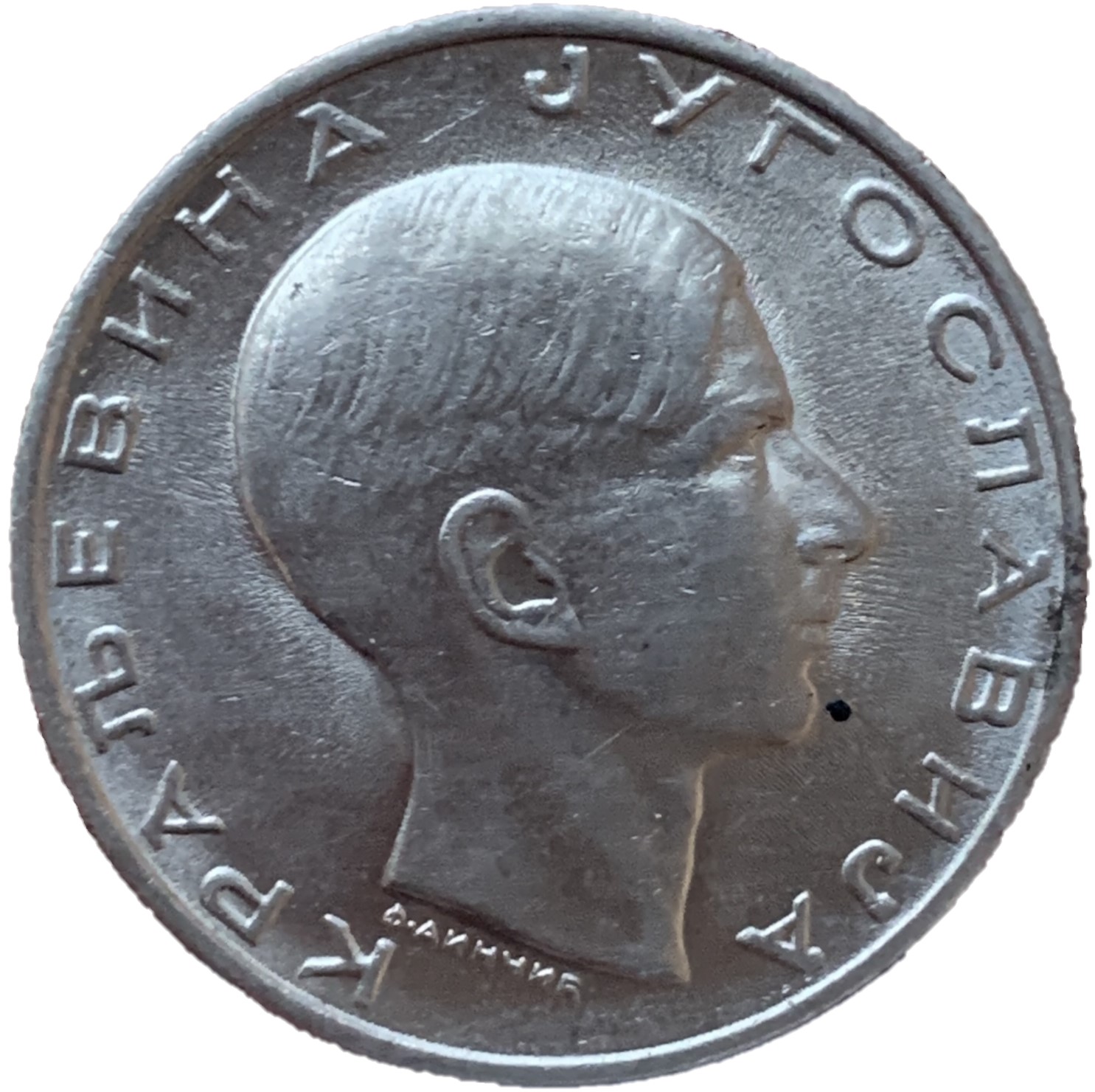 Obverse: Serbian legend: ПЕТАР II КРАЉ ЈУГОСЛАВИЈЕ (Peter II King of Yugoslavia).