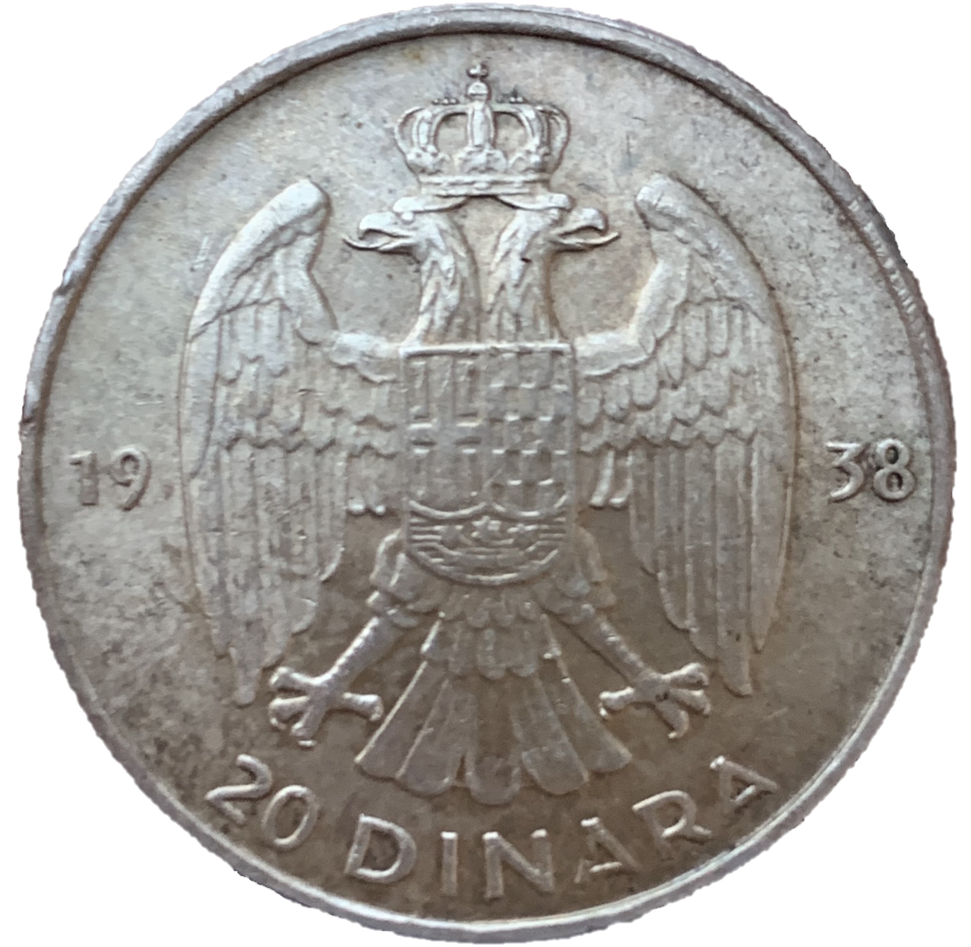 Value: 20 Dinara (20 YUS), Currency: Serbian dinar (1918-1941), Composition: Silver (.500), Weight: 14g, Diameter: 31mm, Mintage: 12,500,000.