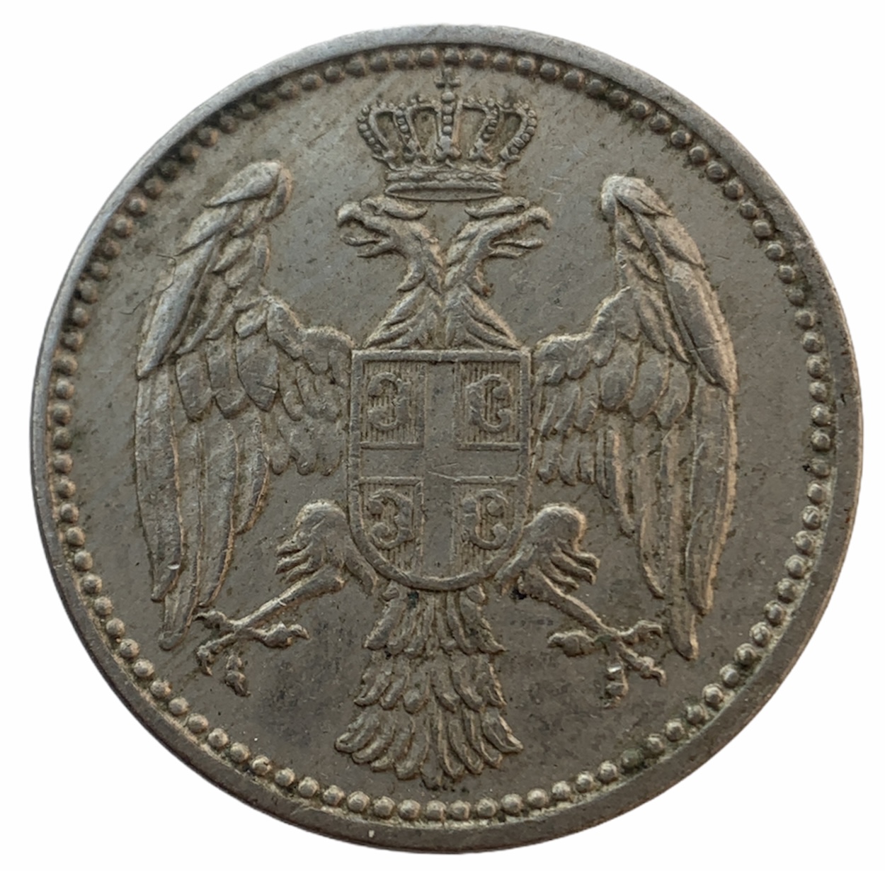 Edge Inscribed: This is Type 1: БОГ*ЧУВА*СРБИЈУ*** (KM#17.1). There is also Type 2: БОГ*СРБИЈУ*ЧУВА (KM#17.2). Translation: GOD PROTECTS SERBIA.